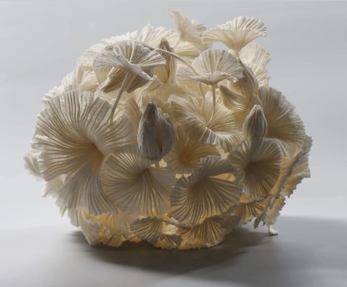 Földi is known for sculpting organic forms from delicately folded and stitched silk. Her sculptures often magically capture movement, and definitely reward slow observation.