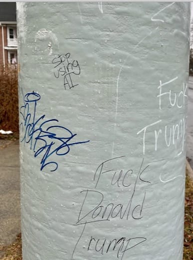 I walked past this utility pole in my neighborhood while I was composing parts of this newsletter in my head. I'm absolutely not going to tell you to "stop using AI." But I am inclined to think that this juxtaposition of graffiti does capture something about the dangerous connections between exploitive tech networks and authoritarianism. As I said, I'm not quite ready to write about that yet.