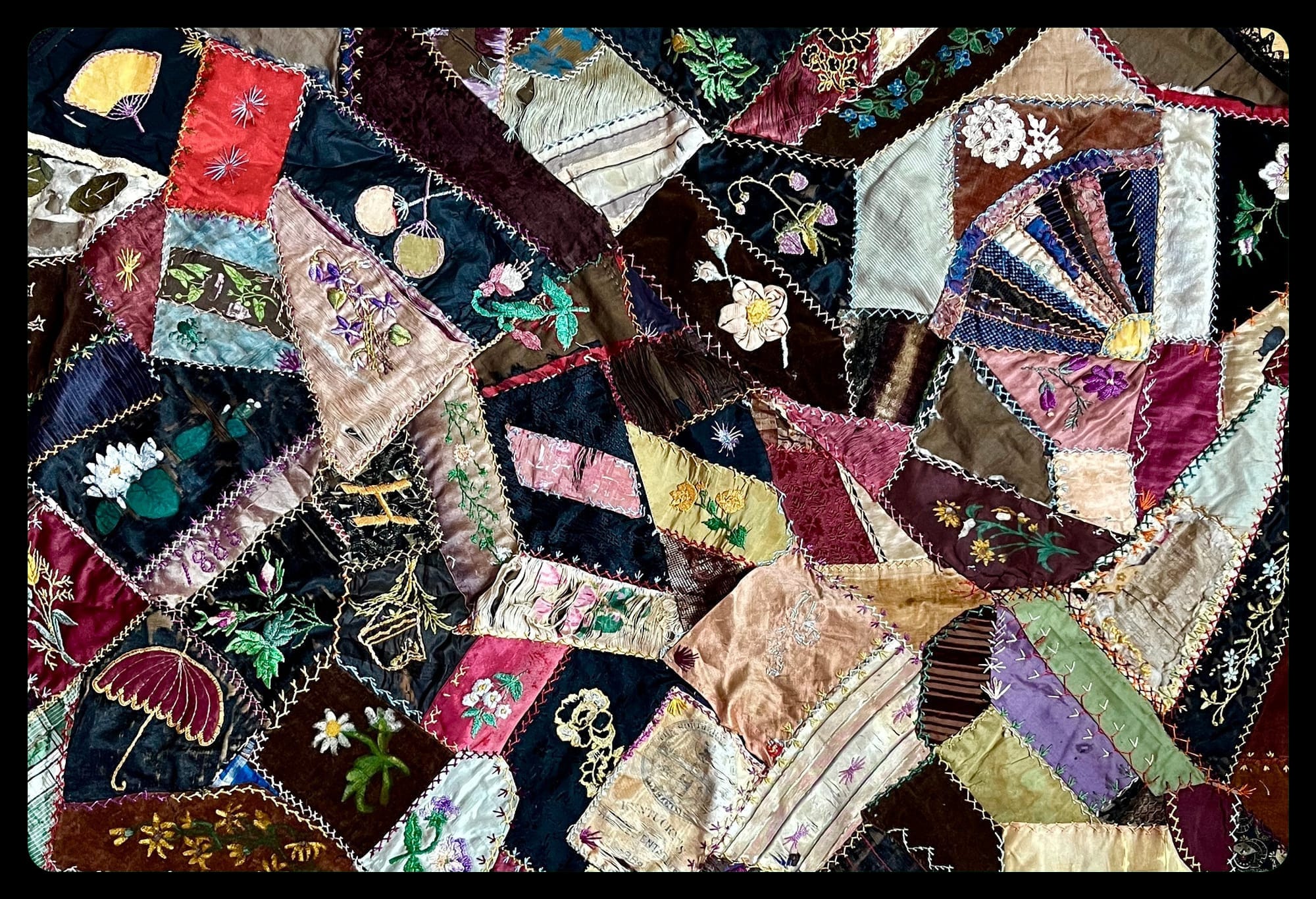 My mother quilted. Her grandmother painted china and embroidered, as well as playfully combining these forms of handiwork on her crazy quilt. I knit and weave. My great-grandmother's quilt exemplifies the "surplus" Tallman refers to—how it may take the form of celebrating hard-won skills, preserving favorite garments, memorializing special moments, and using art to honor natural beauty.