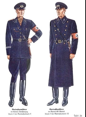 Left, 1937 3rd Reich Handbook, SA Marine Uniform (US National Archive). Right, Greg Bovino in Chicago