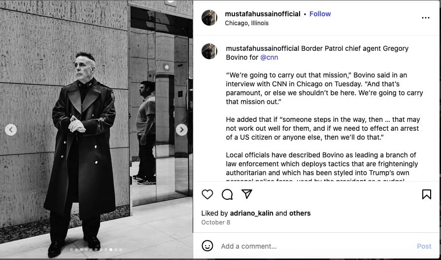 I got curious, and went looking for a predecessor for those images of Bovino captured by photographer Mustafa Hussain, and found this: