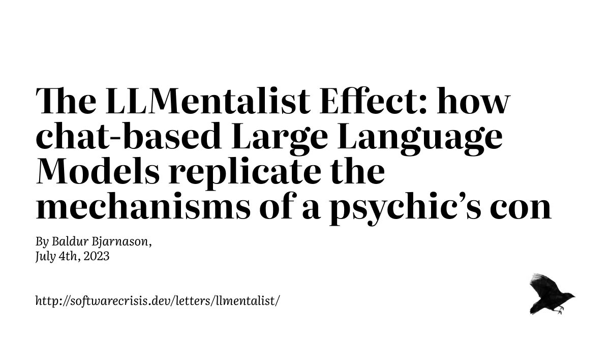 In light of this, you might also find this comparison between people's way of relating to generative AI and to performative psychics of interest: