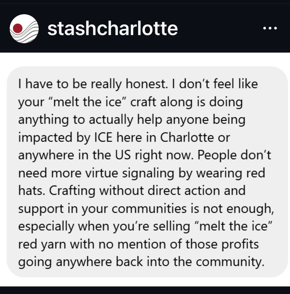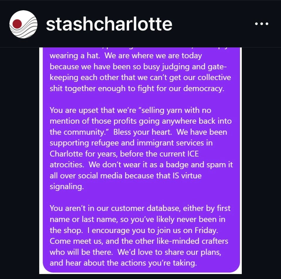 And something so visible, becoming so popular, will invariably be criticized for being "performative." Here's how one yarn shop has explained their perspective on that: