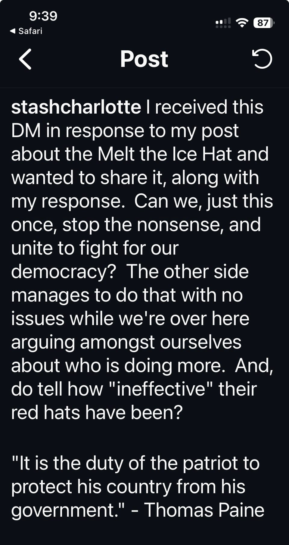 According to Michigan Public Radio, the shop owner, Gilah Mashaal, "typically avoids discussing politics" at her shop, "but as a Jewish woman and an immigrant herself, she felt she had no other option that to find a way to protest" (https://www.michiganpublic.org/2026-01-31/a-red-hat-inspired-by-a-symbol-of-resistance-to-nazi-occupation-gains-traction-in-minnesota).