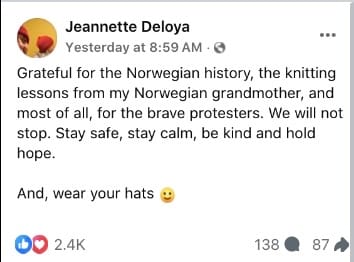 Not everyone is happy about all this talk of resistance. Some don't like that a hat pattern has been named "Melt the Ice." One yarn shop even posted that "political discussion" is prohibited.