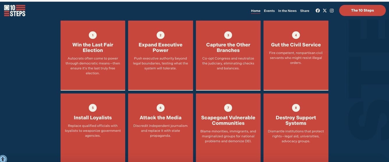 This is a tyrant's display of the crackdown everyone can expect if we stand up, speak out, or even write a critical letter to the editor. What are the chances it—along with all the threats, firings, and lawsuits—will work to silence dissent? That's a hard question to answer, and remains to be seen as events unfold. But to help us better understand our current moment, I'm sharing a selection of what I'm seeing from historians, writers, and political commentators. Drawing on their expertise, previous research, professional experiences, and historical knowledge, these individuals offer insights and warnings, place current events into larger contexts, and provide suggestions for taking action.